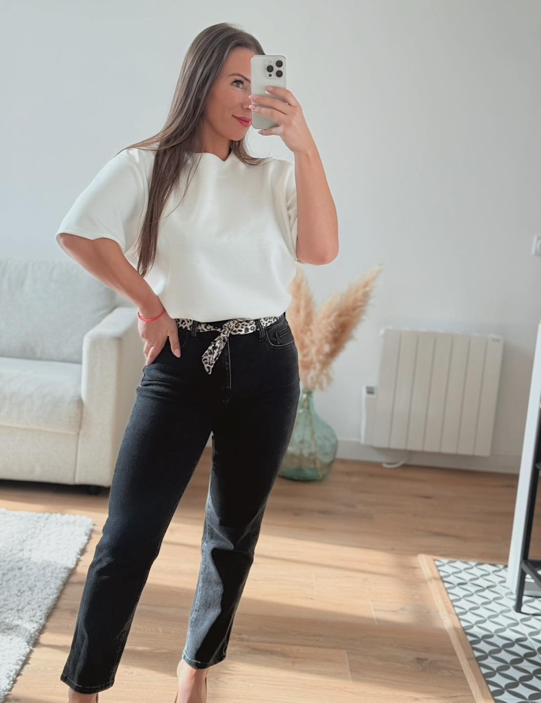 Le jean est fourni avc la ceinture léopard en tissus, il peut se porter sans.