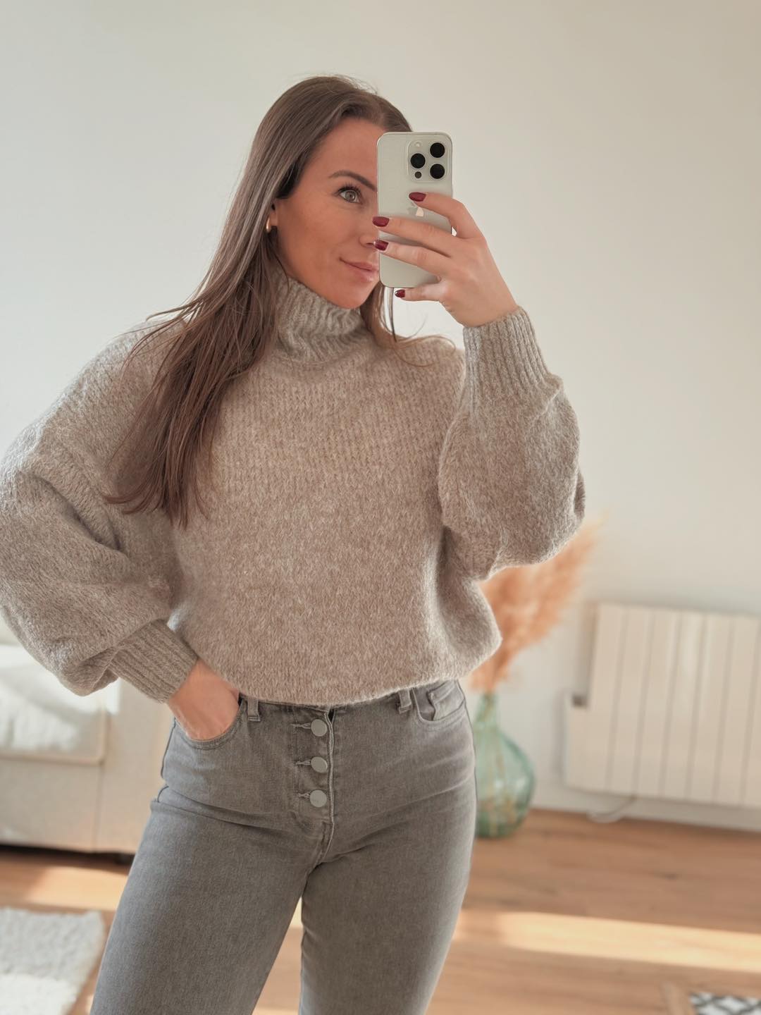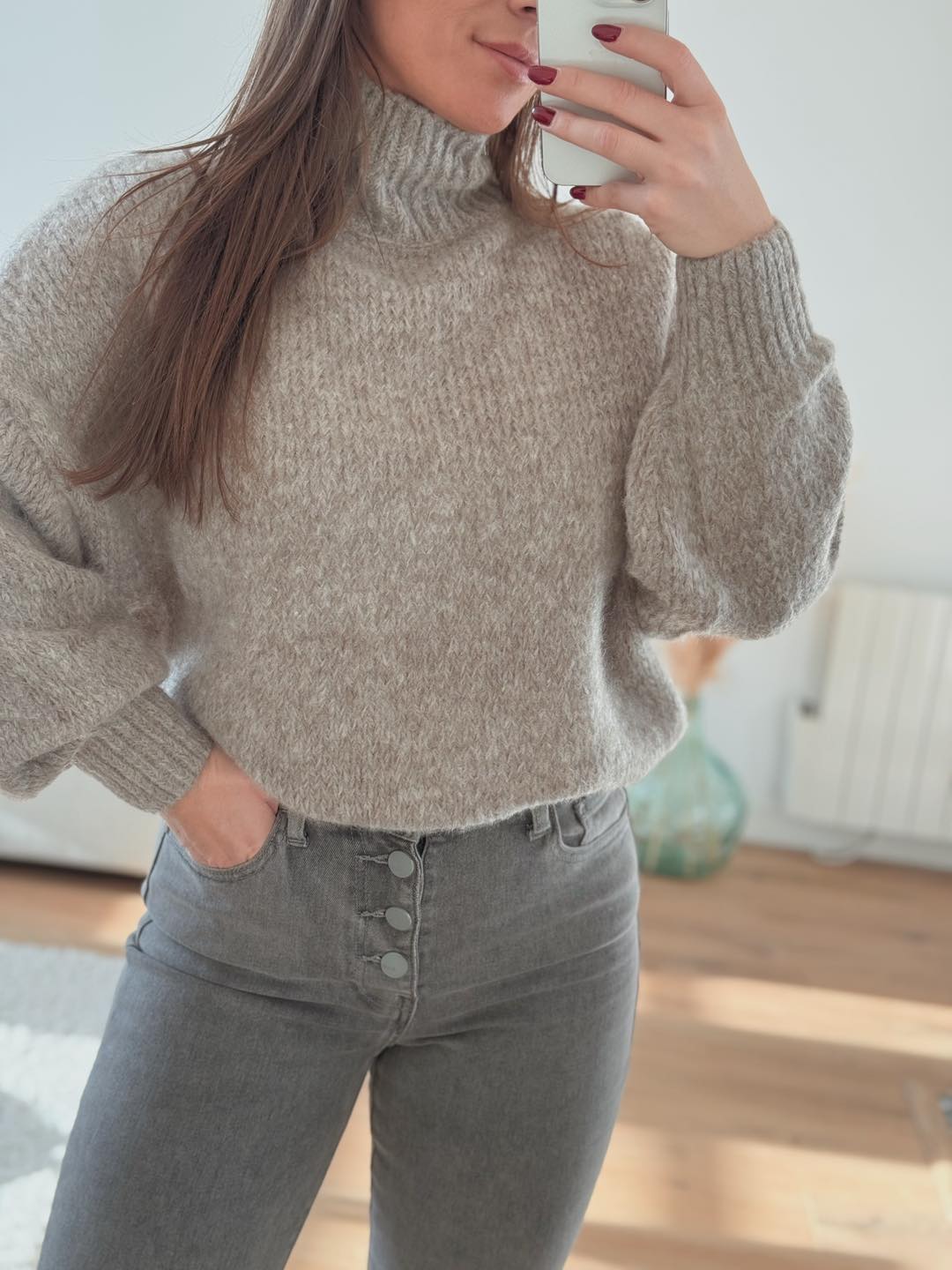 Pull taupe col montant