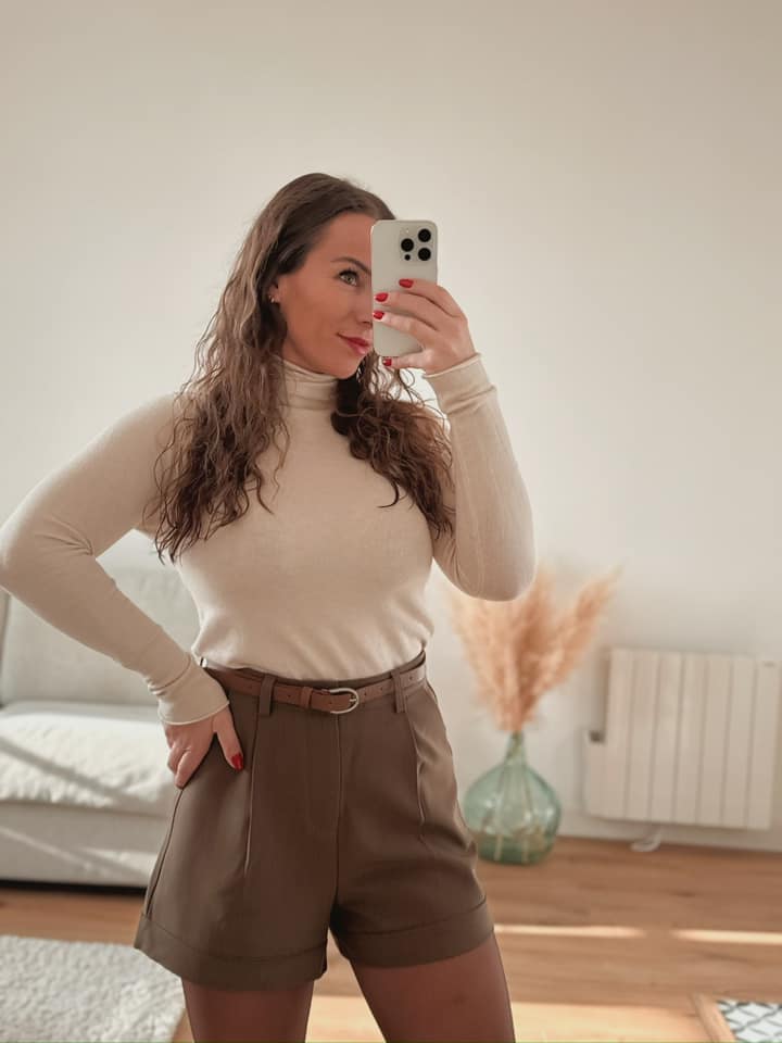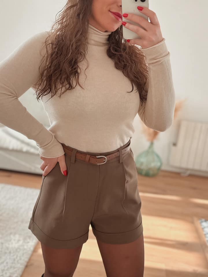 Short avec ceinture intégrée couleur taupe